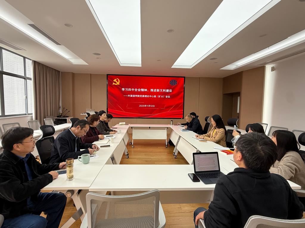 院长方文开聚焦学院第八轮任期目标完成情况谈了学习体会,表示将锚定学科发展中的痛点难点问题,集中力量办好自己的事,推动学院未来高质量发展。李荣华表示,学院将以党的二十届四中全会精神为指引,以学促进,深刻领会一体推进教育科技人才发展、进一步对外开放、高质量共建一带一路倡议等国家战略需求与外语专业建设的紧密联系,以高质量的党建促进高质量的学科建设、专业发展和人才培养,不断续写学院发展的新篇章。