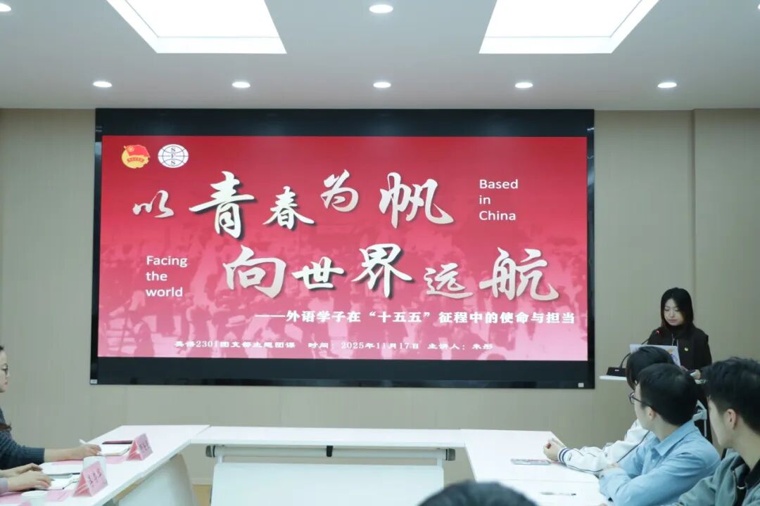 为深入学习贯彻党的二十届四中全会精神,落实“十五五”规划中关于扩大高水平对外开放的重要部署,培养具备家国情怀与全球视野的新时代外语人才,11月17日下午,开云手机登录入口英语2301团支部在开云手机登录入口A349举办“以青春为帆,向世界远航——外语学子在‘十五五’征程中的使命与担当”主题团日活动。校党委副书记、纪委书记李旸,院党委书记李荣华,党委副书记、副院长季王飞,分团委书记顾海星,辅导员、英语2301班主任查博奕,英语2301全体团员以及学院班团骨干出席本次活动。活动由英语2301团支书朱彤主持。